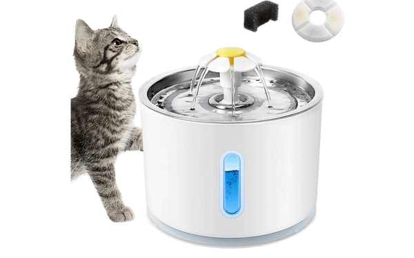 Stainless Steel Cat Water Fountain Feeder Flower Round Fountain 2.4L Pet Cat Silent Water Dispenser DC Water Pump LED